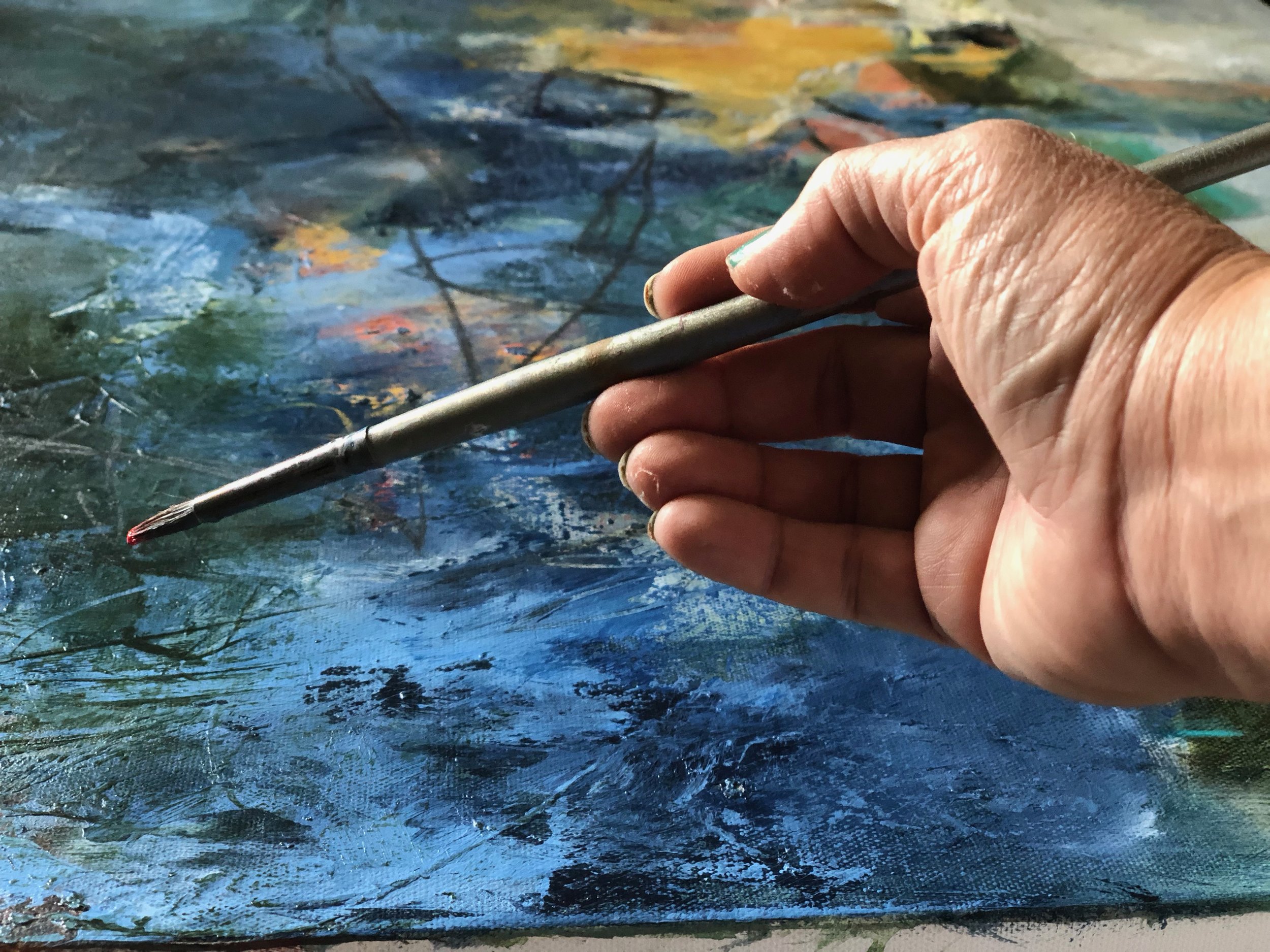Abstract has become my favorite style of painting. I feel it is my creative process at its most authentic, working through the process of pure feeling, movement and expression until the painting reveals itself. My work is intuitive, colorful, layered, and textural. I believe traveling as I do so often has given me this feeling of freedom to explore on canvas as I’ve done around the world.